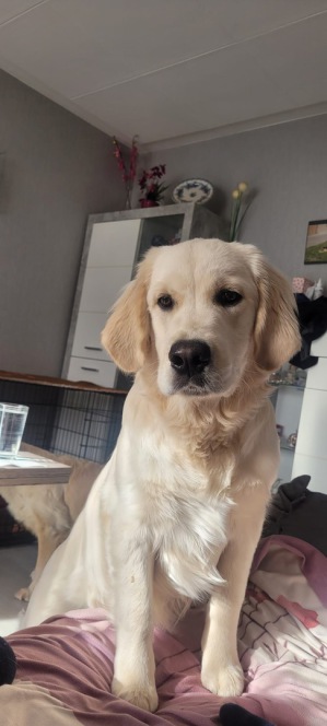 Hier ein aktuelles Foto von Maluna. Sie fragt mal höflich nach ob sie auf´s Sofa darf!